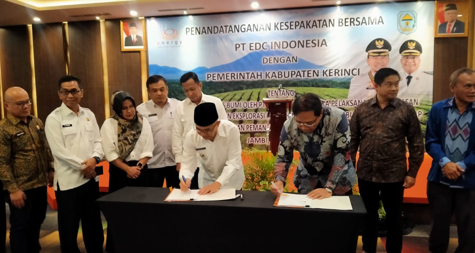 JAMBI – Pemkab Kerinci melakukan penandatanganan kesepakatan bersama (MoU) PT Energy Development Corporation (EDC) Indonesia, yang bertempat di ruang Ebony BW Luxury Hotel Jambi, Rabu (14/6/2023).
