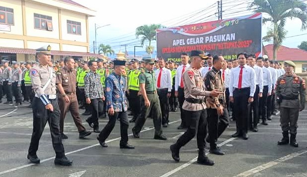 Wakapolres Kerinci Kompol Sm Nababan saat meninjau Pasukan bersama Forkopimda pada Apel Pasukan Operasi Ketupat 2025.