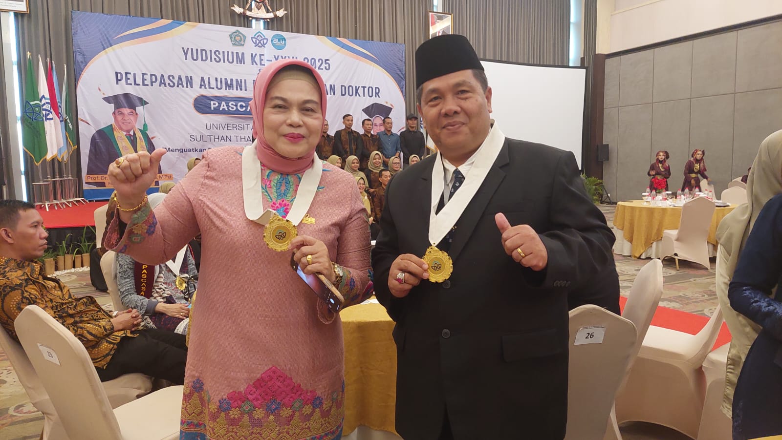Prosesi wisuda hari ini turut dihadiri oleh Rektor UIN STS Jambi, Prof. Dr. H. Kasful Anwar, M.Pd jajaran pimpinan kampus, Gubernur Jambi, tokoh masyarakat, serta ratusan wisudawan lainnya. Rektor dalam sambutannya berharap agar seluruh lulusan, terutama dari kalangan tokoh publik, mampu menjadikan gelar akademik ini sebagai sarana memperkuat pelayanan dan dedikasi kepada masyarakat. (glg)