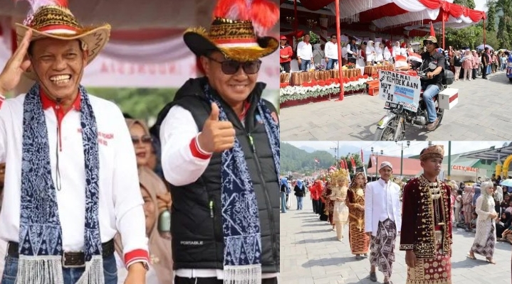 Kolase foto saat Pawai HUT RI ke-80 dan Lomba Barisan Indah di Sungai Penuh.