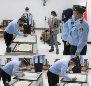 KERINCI – Kantor Imigrasi Kelas II Non TPI Kerinci menggelar acara Deklarasi Janji Kinerja, Penandatanganan Perjanjian Kinerja dan Komitmen Pelaksanaan Zona Intergritas Imigrasi tahun 2022, Senin (24/01/2022).