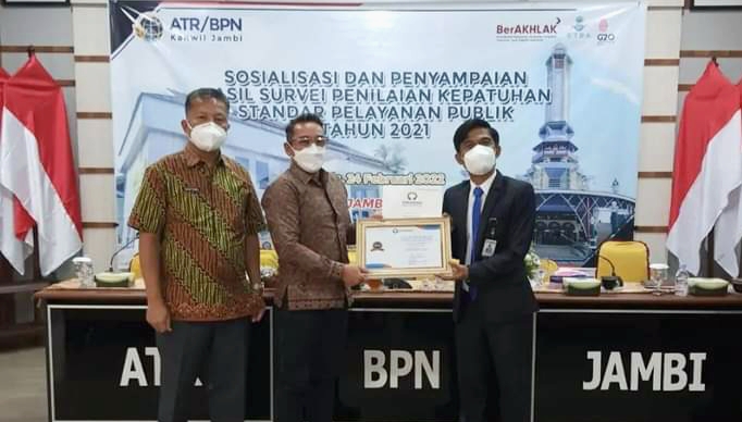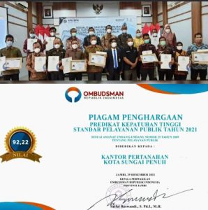 JAMBI – Upaya Kantor Pertanahan Kota Sungai Penuh dalam membenahi pelayanan publik mendapat penghargaan dari Ombudsman Republik Indonesia Perwakilan Jambi.